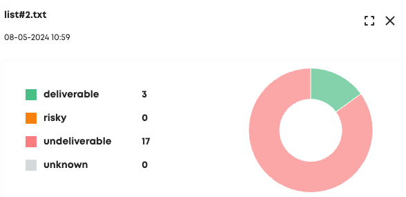 Nakonec Bouncer roztřídí každý e-mail do kategorií: platný, neplatný, rizikový nebo neznámý. Získáte tak jasný přehled o kvalitě vašeho seznamu e-mailů. Vidíte, které e-maily jsou bezpečné a které mohou způsobit problémy. Toto třídění vám pomůže při rozhodování o dalším postupu. Odesílejte s jistotou na platné e-maily. Rizikové a neplatné zkontrolujte nebo odstraňte.