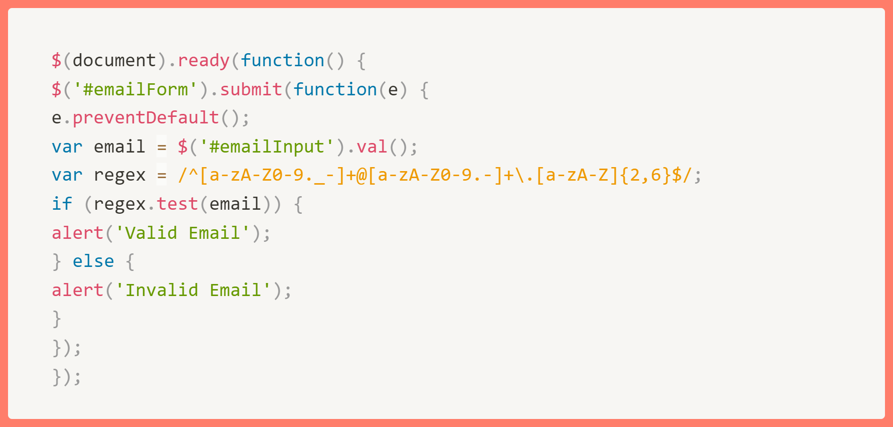 Du bliver nødt til at skrive kode specifikt til e-mailvalidering, hvilket indebærer at lave regulære udtryk (smarte tekstmønstre) for at kontrollere formatet. Det kan være tidskrævende, især hvis du ikke er fortrolig med kodning. Du kan selvfølgelig finde kodestykker online, men det kan kræve en ekstra indsats at tilpasse dem til dine specifikke behov.