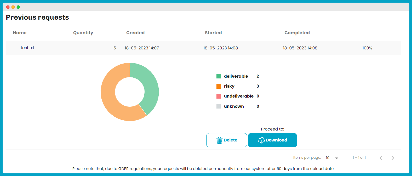 We highly recommend using an email verification service or tool to further validate the deliverability of your email addresses.