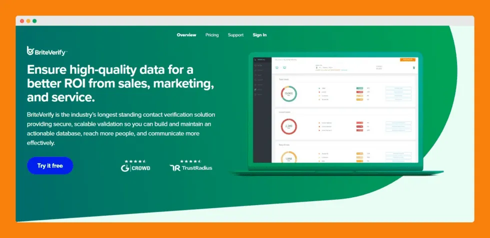 BriteVerify es un Email Checker que sirve como primera línea de defensa contra los datos erróneos, ya que garantiza que sólo la información de contacto válida y procesable entra en su base de datos. Esto es crucial para obtener buenos resultados de marketing por correo electrónico y una sólida reputación como remitente.