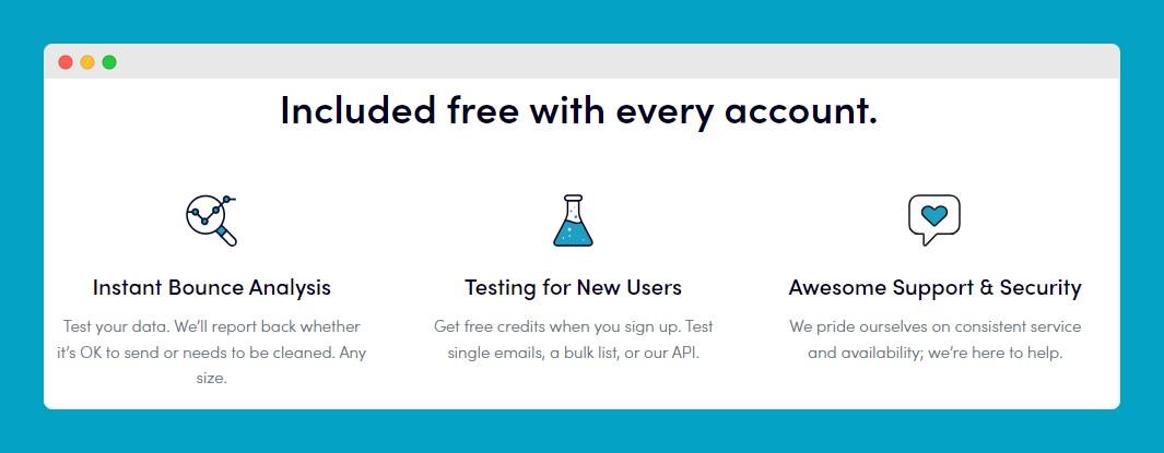 Bouncer ofrece servicios de verificación de correo electrónico en tiempo real, junto con una comprobación de toxicidad, un kit de entregabilidad e integraciones para mejorar aún más las campañas de marketing por correo electrónico de su empresa. Nuestro servicio de verificación de correo electrónico masivo tiene planes de precios transparentes y una amplia gama de características que casi cualquier persona puede utilizar sin instrucciones detalladas.