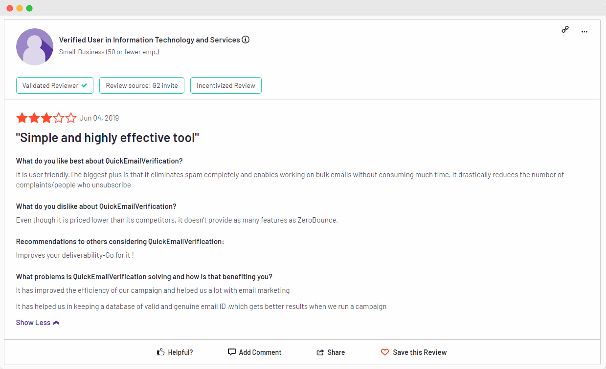 - A los usuarios les resulta fácil integrar QuickEmailVerification en sus sistemas y flujos de trabajo existentes.