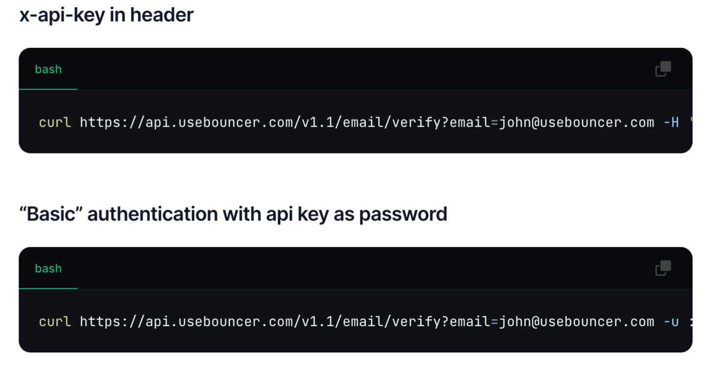 No tienes que conocer lenguajes de programación avanzados para instalar un widget de verificación de correo electrónico en tu sitio web. Con Bouncer, puedes tomar nuestra API, ajustarla a tus preferencias y validar las direcciones de correo electrónico en el punto de entrada.
