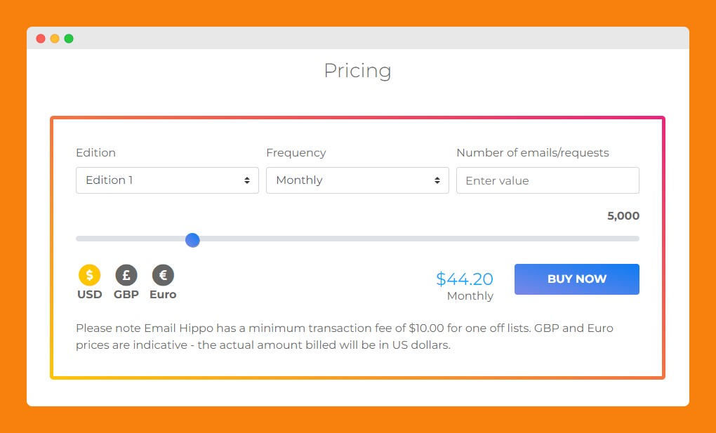 Par exemple, pour 5.000 emails, vous paierez $40.00. C’est tout. Et c’est moins cher que chez Email Hippo.