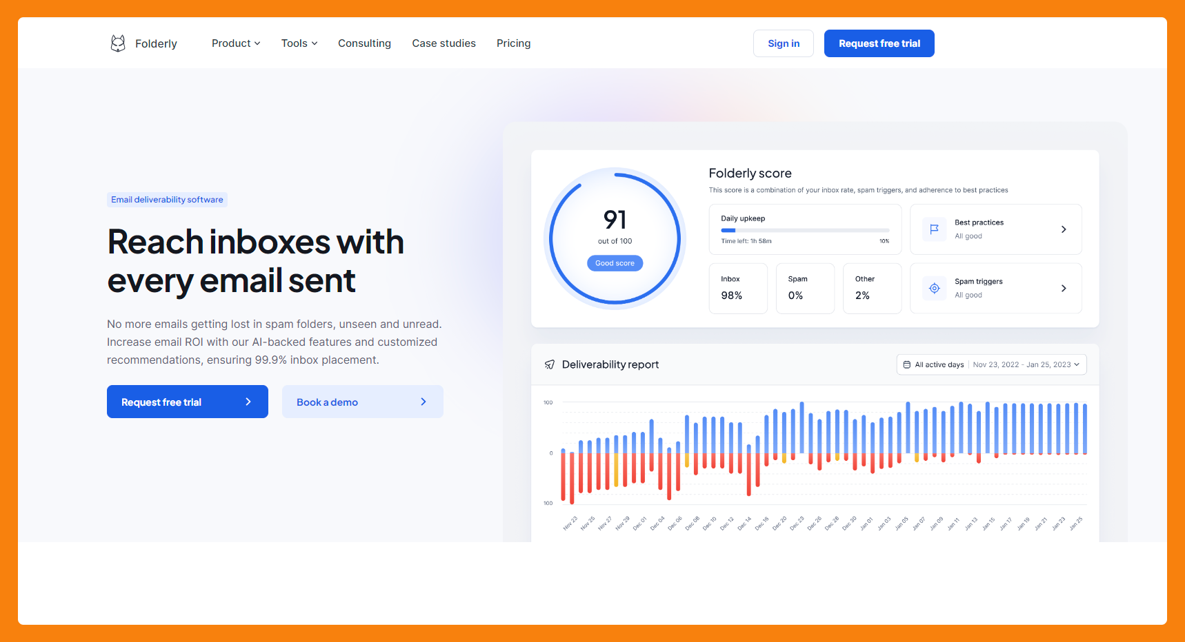 Vous vous concentrez sur les ventes, l’engagement et la fidélisation de la marque par le biais de campagnes d’email marketing ? Découvrez Folderly pour améliorer la délivrabilité de votre boîte de réception.