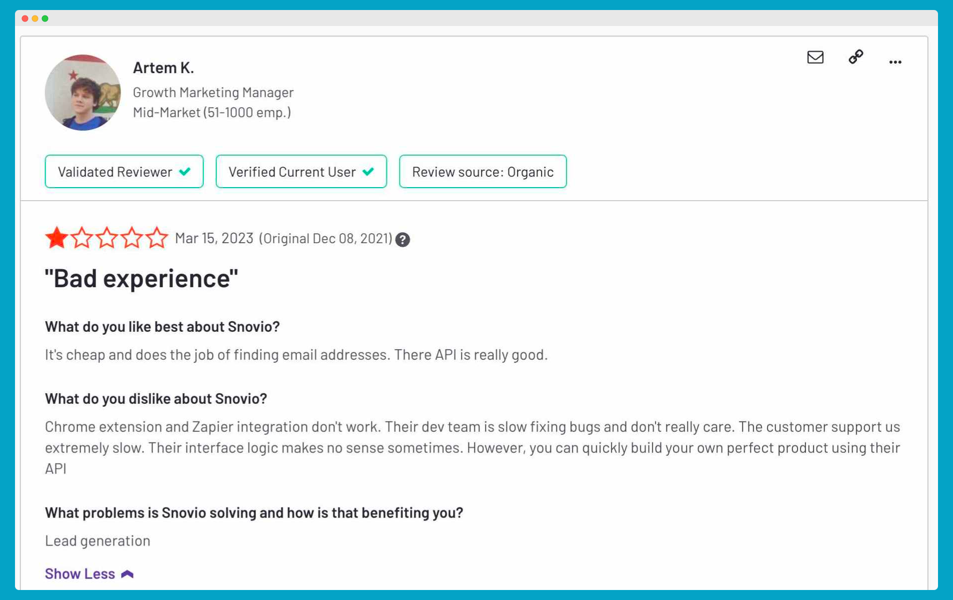 Mostanra már valószínűleg megértette, hogy a Snovio nem a végsőkig könnyed e-mail ellenőrzés és e-mail menedzsment eszköz. Az Ön igényeitől függően az ezen a listán szereplő versenytársak közül sokan hasonló vagy sokkal jobb munkát végeznek az ár töredékéért és jobb kezelhetőséggel.