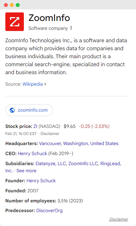 There’s no doubt that ZoomInfo is a real business and a publicly traded company (Nasdaq: ZI). It has thousands of employees, offices around the world, and millions of users. It’s not a scam because it exists, operates, and provides B2B data.