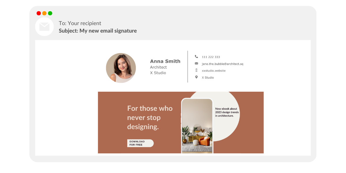 이메일 서명에 이메일 서명 배너를 사용하는 것은 장단점이 있는 전략적 결정입니다. 특히 전자책 출시와 같이 수신자의 관심을 끌기 위한 현명한 방법이 될 수 있습니다. 하지만 메시지에 무게감이 더해져 제대로 표시되지 않을 수 있습니다.