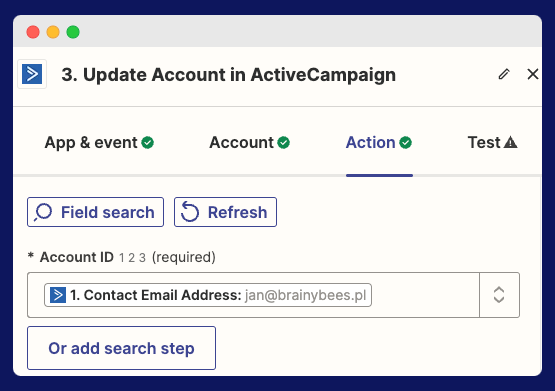 이제 Zap이 준비되었습니다. 계정을 연결하기만 하면 모든 작업이 완료됩니다! ActiveCampaign API 키를 받아 필드에 붙여넣으세요. 이제 액티브캠페인 계정이 연결되었습니다. Bouncer도 똑같이 하세요.