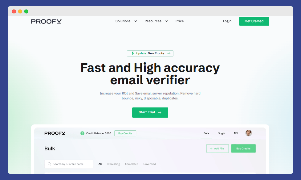 Proofy prides itself on its high accuracy rate, claiming to offer 98.5% accuracy in email verification. This impressive figure means you can trust Proofy to effectively clean your email lists, removing invalid addresses and reducing bounce rates.