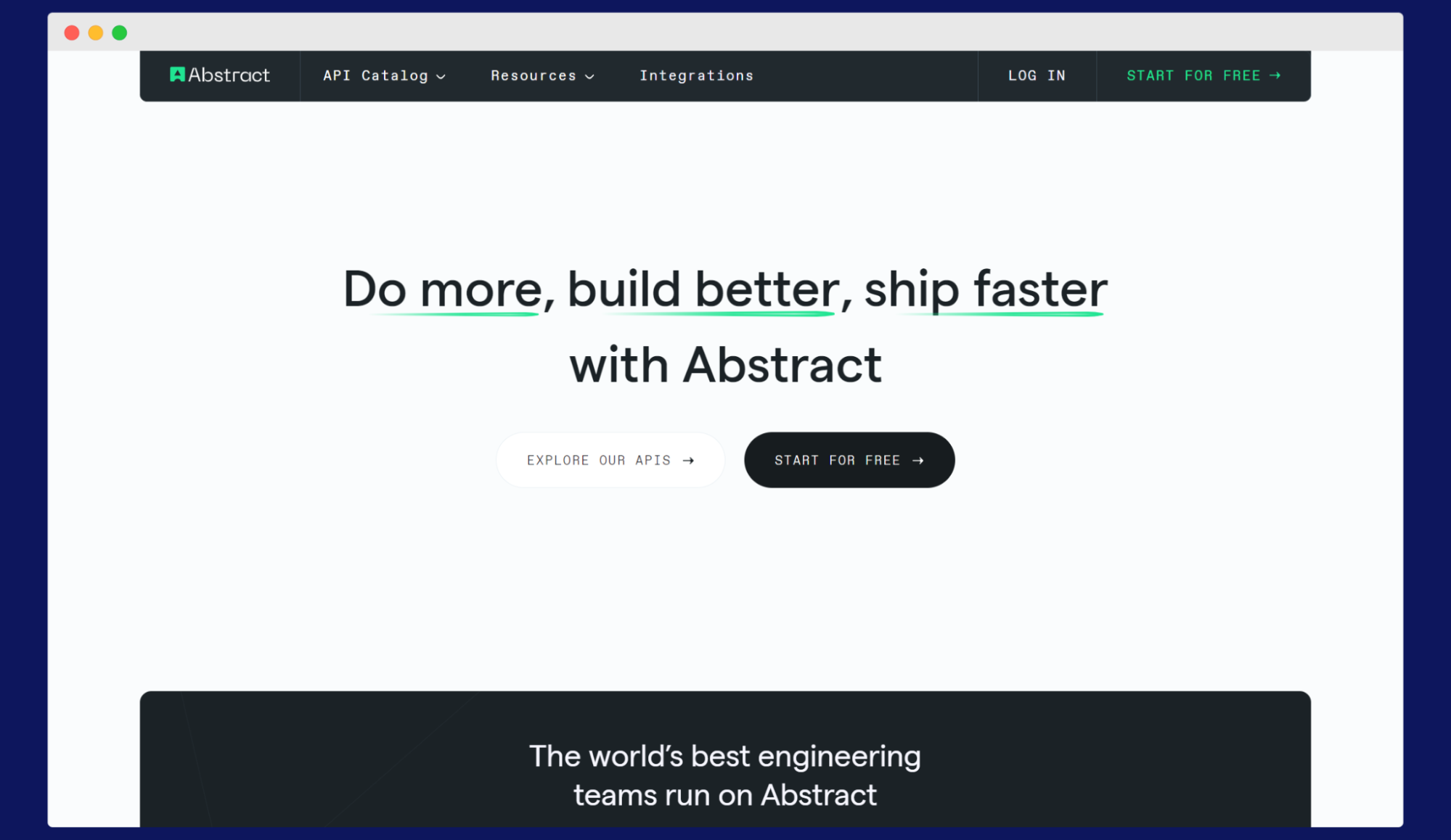 A Abstract API se integra perfeitamente a muitas ferramentas e plataformas que sua empresa talvez já use, como serviços de nuvem como AWS e Azure, CRMs como Salesforce e plataformas de marketing como Mailchimp e HubSpot.