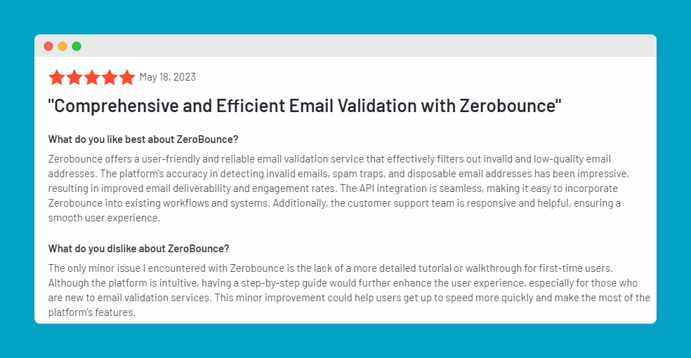 Por exemplo, houve várias avaliações negativas sugerindo que a ZeroBounce deveria melhorar seus serviços na área de suporte ao cliente. É enfatizado que o auxílio é: