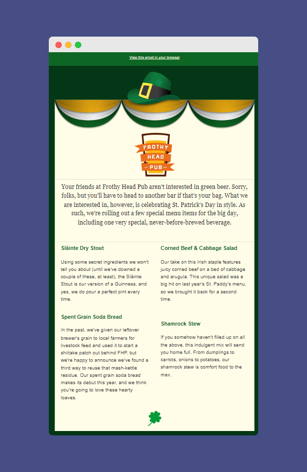 📕 Читайте также: Маркетинговые кампании по электронной почте в честь Дня святого Патрика
