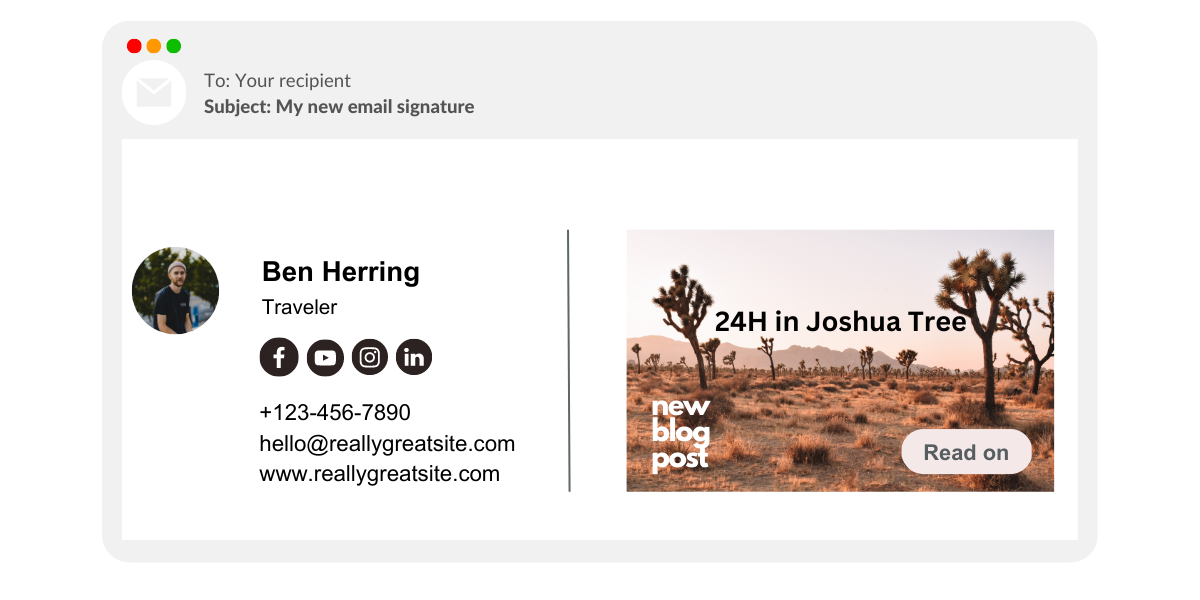 Om du har en regelbunden affärsblogg kan den också ingå i din e-postsignatur. Detta är ett utmärkt sätt att hålla folk intresserade av vad som händer i din bransch och ge dem nytt innehåll varje gång de kollar de e-postmeddelanden de får från dig.