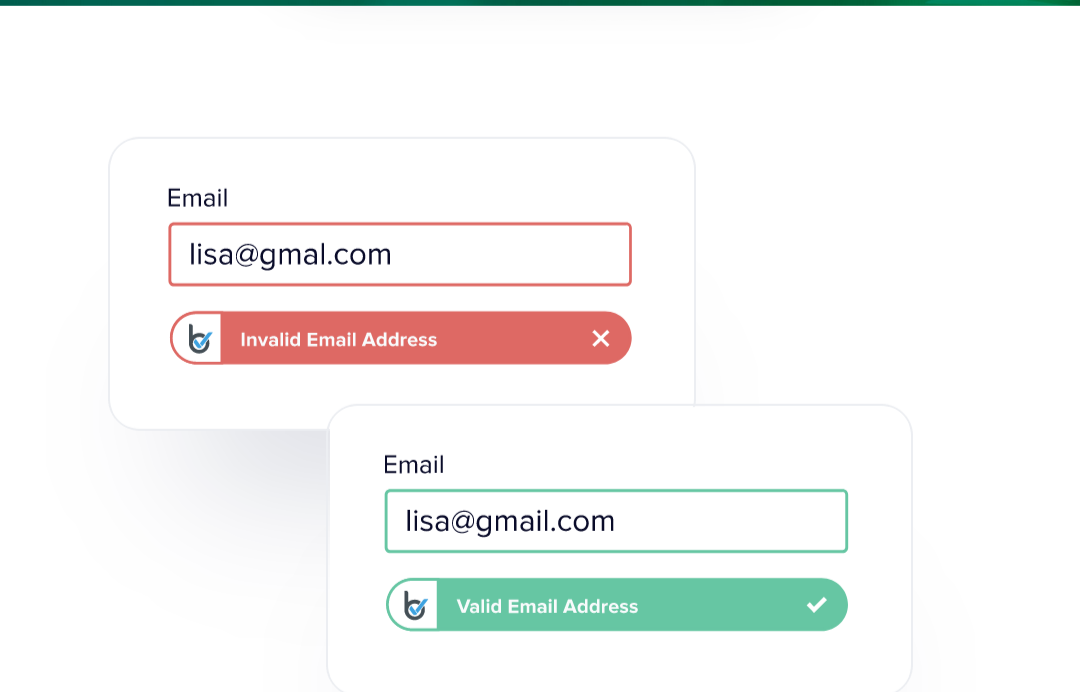 Bu şekilde, örneğin, kullanıcıların hesaplarını oluştururken ekledikleri adresleri doğrulayabilir ve hemen verilerini düzeltmelerini isteyebilirsiniz. Bu gerçek zamanlı e-posta doğrulama platformu, listelerinize yalnızca geçerli e-postaların eklenmesini sağlayarak işletmeniz için bolca zaman ve para tasarrufu sağlayabilir.