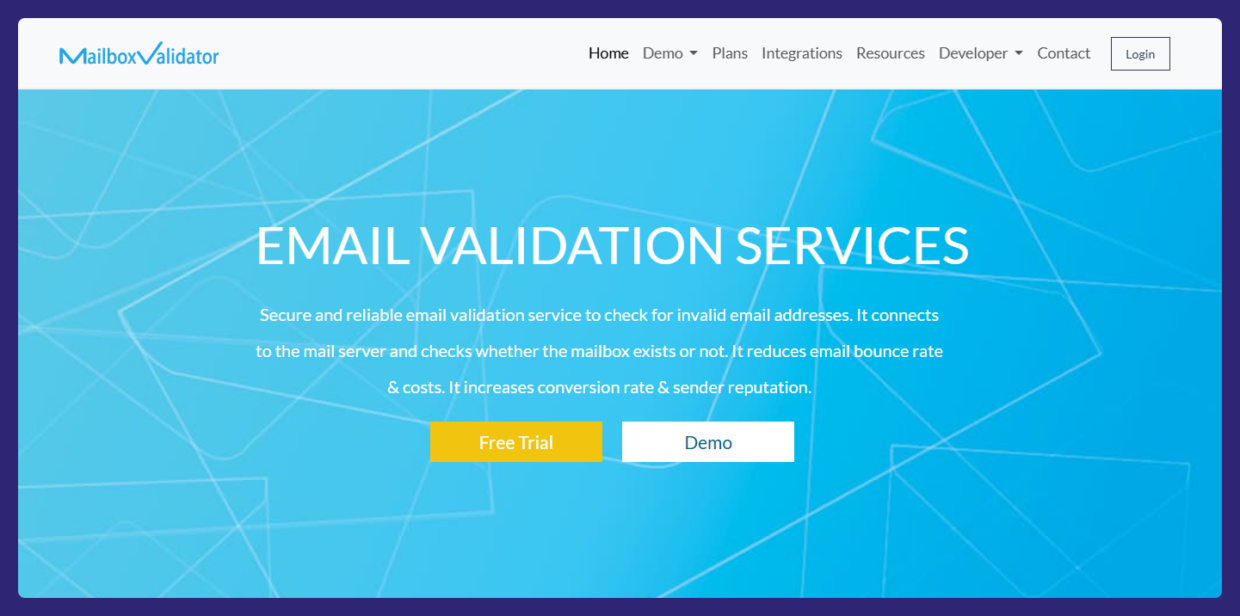 MailboxValidator, işletmelerin kampanyalar başlamadan önce doğruluğu sağlamalarına yardımcı olan tam ölçekli bir e-posta doğrulama web sitesi, modülü ve API’sidir. Posta sunucusunun adresi kabul edip etmediğini, alan adının Gmail veya Hotmail gibi ücretsiz bir e-posta sağlayıcısı olup olmadığını veya geçici tek seferlik hesaplar oluşturan tek kullanımlık bir e-posta sağlayıcısına ait olup olmadığını kontrol eder.