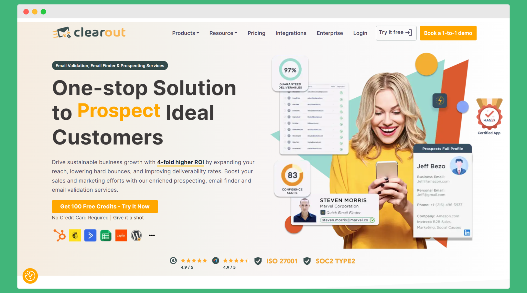 ➡️ 如何免费? 注册后,您有 100 个信用点数。一个信用点 = 一个电子邮件验证,但潜在客户和电子邮件查找、特定搜索(如非基于角色的电子邮件或电话号码)需要花费更多信用点。