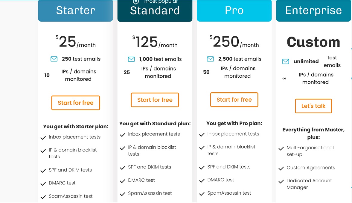 带保镖 验证 100,000 个地址的费用为 $300,是 Briteverify 要求的一半。至于可送达性工具,您只需每月支付 $25 即可获得,其中包括定位测试、黑名单检查器和 SpamAssassin 测试!